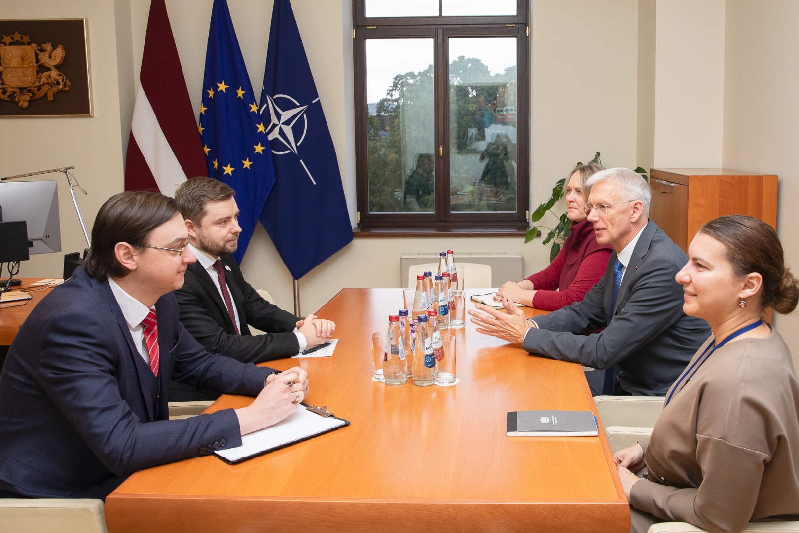 On 18 October 2023, the Minister of Foreign Affairs, Krišjānis Kariņš met with the Ambassador of Ukraine to Latvia, Anatolii Kutsevol. During the meeting, the Foreign Minister and the Ambassador discussed the developments in the Middle East, the impact of the Israeli-Hamas armed conflict on the security situation in the region and its possible repercussion for Ukraine, the consequences of the Russian aggression against Ukraine, and Ukraine’s resilience against the aggressor. The officials exchanged views on the EU’s support to Ukraine, including Ukraine’s further integration into the EU, as well as Latvia’s practical involvement in the reconstruction of Ukraine. Krišjānis Kariņš also reaffirmed to the Ambassador Latvia’s strong support to Ukraine. Photo: Laura Celmiņa, Ministry of Foreign Affairs.