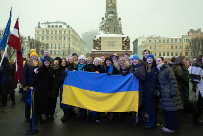 In commemoration of the 3rd anniversary of Russia's full-scale invasion of Ukraine, the "Together until victory!" campaign is taking place at the Freedom Monument on 24 February, 2025. Photo: Laura Celmiņa, Ministry of Foreign Affairs.