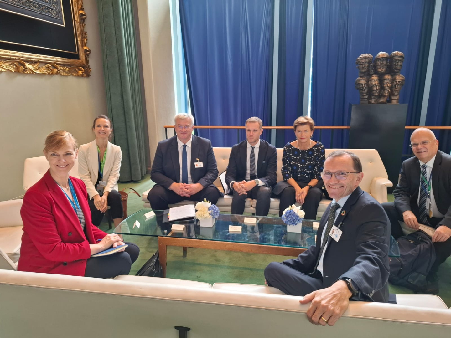 2024. gada 23. septembrī, ANO Ģenerālās asamblejas 79. sesijas Augsta līmeņa nedēļas laikā, norisinās Baltijas valstu un Ziemeļvalstu (NB8) ārlietu ministru tikšanās ar Ukrainas ārlietu ministru Andriju Sibihu. Foto: Ārlietu ministrija.